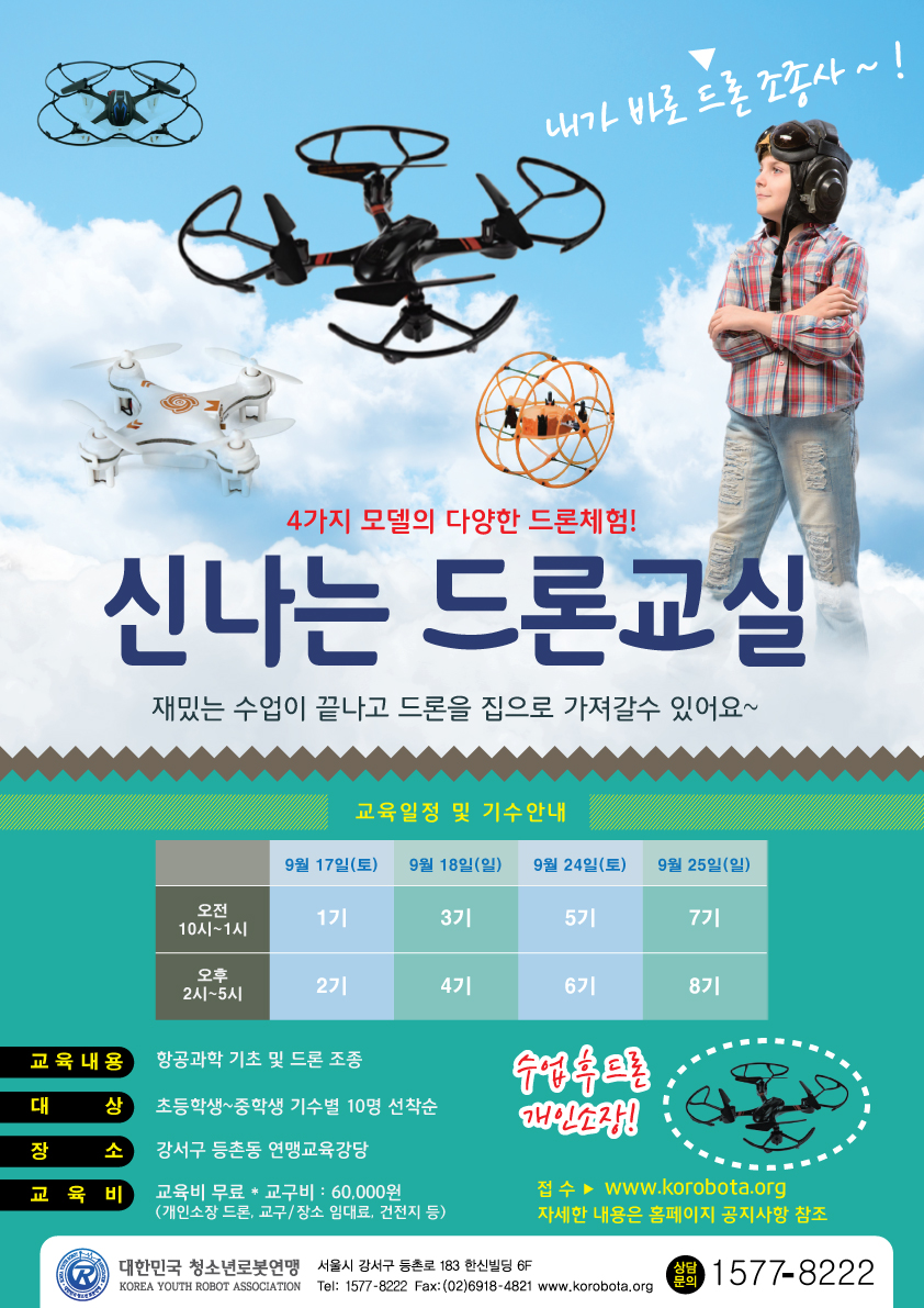 (»ç)´ëÇѹα¹ û¼Ò³â ·Îº¿¿¬¸Í¿¡¼´Â 2016³â û¼Ò³âµé¿¡°Ô ·Îº¿°úÇÐÀÇ ¹«ÇÑÇÑ ¼¼°è¸¦ ±³À°ÇϰíÀÚ ±³À°±âºÎ·Î 9¿ù ½Å³ª´Â µå·Ð±³½ÇÀ» ¿î¿µÇÕ´Ï´Ù.