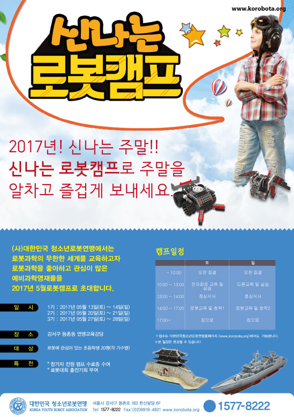 (»ç)´ëÇѹα¹ û¼Ò³â ·Îº¿¿¬¸Í¿¡¼´Â 2017³â û¼Ò³âµé¿¡°Ô ·Îº¿°úÇÐÀÇ ¹«ÇÑÇÑ ¼¼°è¸¦ ±³À°ÇϰíÀÚ ±³À°±âºÎ·Î 5¿ù ½Å³ª´Â ·Îº¿Ä·ÇÁ¸¦ ÁøÇàÇÕ´Ï´Ù.