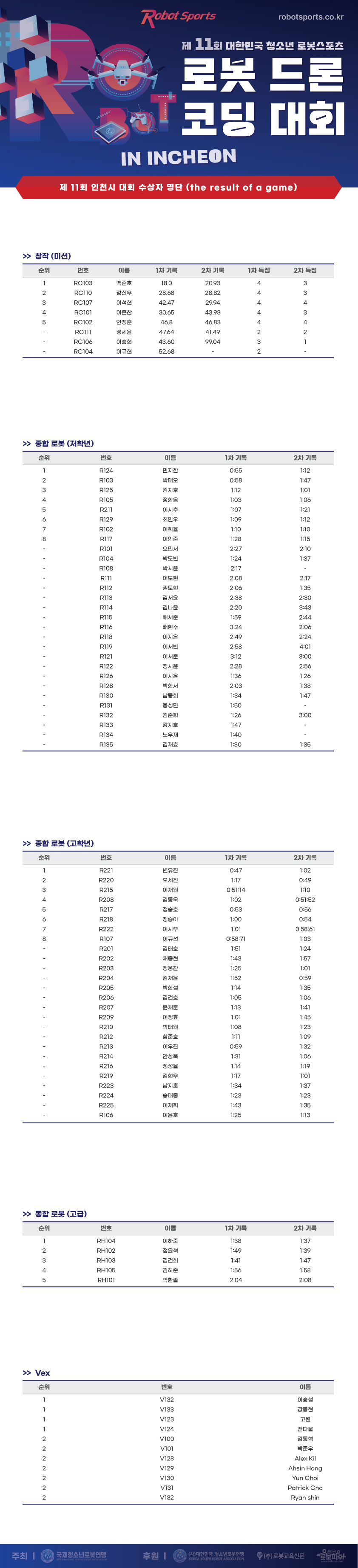 Á¦ 11ȸ ´ëÇѹα¹ û¼Ò³â ·Îº¿ µå·Ð ÄÚµù ´ëȸ (ÀÎõ½Ã´ëȸ) - ¼ö»óÀÚ ¸í´Ü